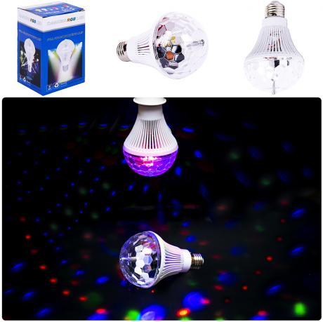 Світлодіодна лампа LED 13-76 випромінює різноколірне світло, що може прикрасити будь-яку домашню вечірку. Її мерехтливе світіння може перетворити інтер'єр та створити веселу атмосферу. Ця лампа споживає 1w енергії, працює від напруги 85-265В/50-60 Гц і може служити до 20000 годин. Лампа з цоколем E27 легко укручується в звичайний патрон. У комплект входить одна обертова лампа з пластиковою сферою. Розміри з патроном: висота 15 см, діаметр 10 см.